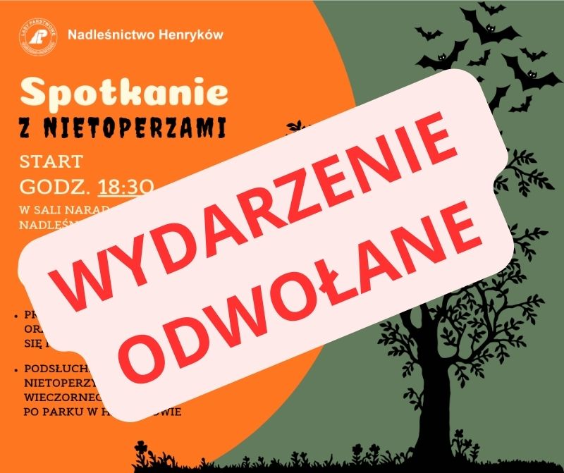 Z przykrością informujemy, że w związku z obecną sytuacją, zaangażowaniem w inne działania oraz bezpieczeństwem nas wszystkich jesteśmy zmuszeni odwołać planowane spotkanie z nietoperzami.